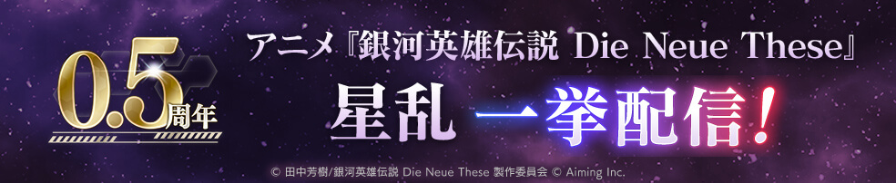4/2(水)より、『ノイサガ』サービス開始0.5周年を記念して、アニメ『銀河英雄伝説 Die Neue These』のセカンドシーズン「星乱」を、『ノイサガ』の公式YouTubeチャンネルにて順次配信します!