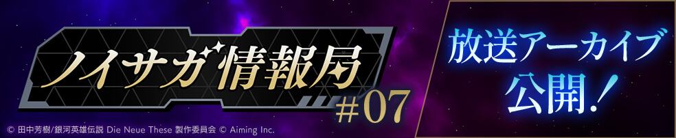 9/16(火)20:00に、公式YouTubeチャンネル『銀河英雄伝説 Die Neue Saga』にて「ノイサガ情報局#07」の実施が決定いたしました!